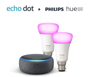 8. Echo Dot (3rd gen) + Philips Hue Smart Bulb Twin Pack for 61.99£ (54% OFF)