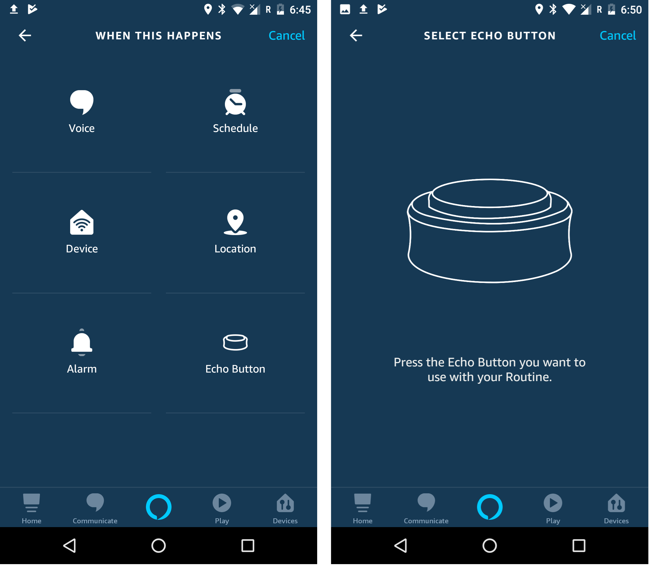 Auch mit einem Echo Button können Sie Geräte oder Routinen auslösen. Klicken Sie auf “Echo Button” und wählen aus, was passieren soll, wenn der Button gedrückt wird.