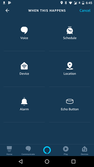 - Gerät: Löst die Routine über einen Kontakt- oder Bewegungssensor aus (dies erfordert momentan eine 1Home Box oder den Echo Plus Hub).