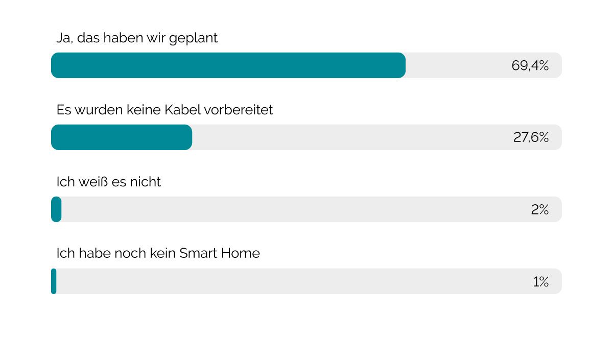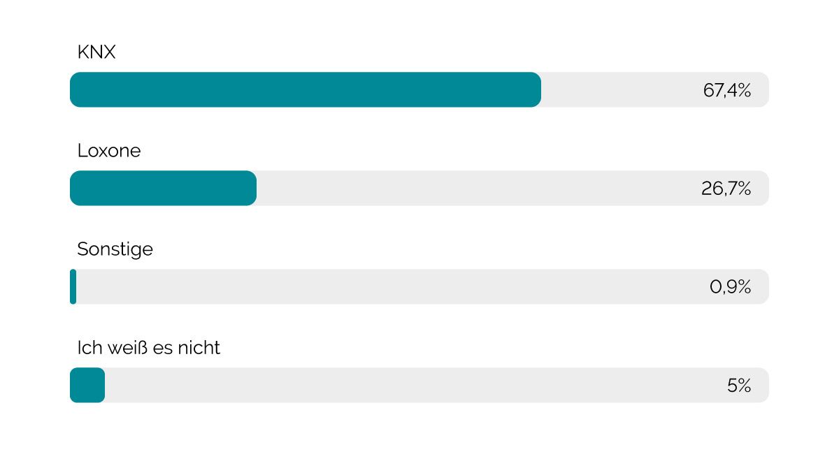 Von allen teilnehmenden Endbenutzern waren knapp 70 % KNX Nutzer, und mit zusätzlich mehr als einem Viertel an Loxone Nutzern können wir sagen, dass mehr als 90 % Besitzer eines kabelgebundenen Smart Home-Systems waren (Abbildung 1).