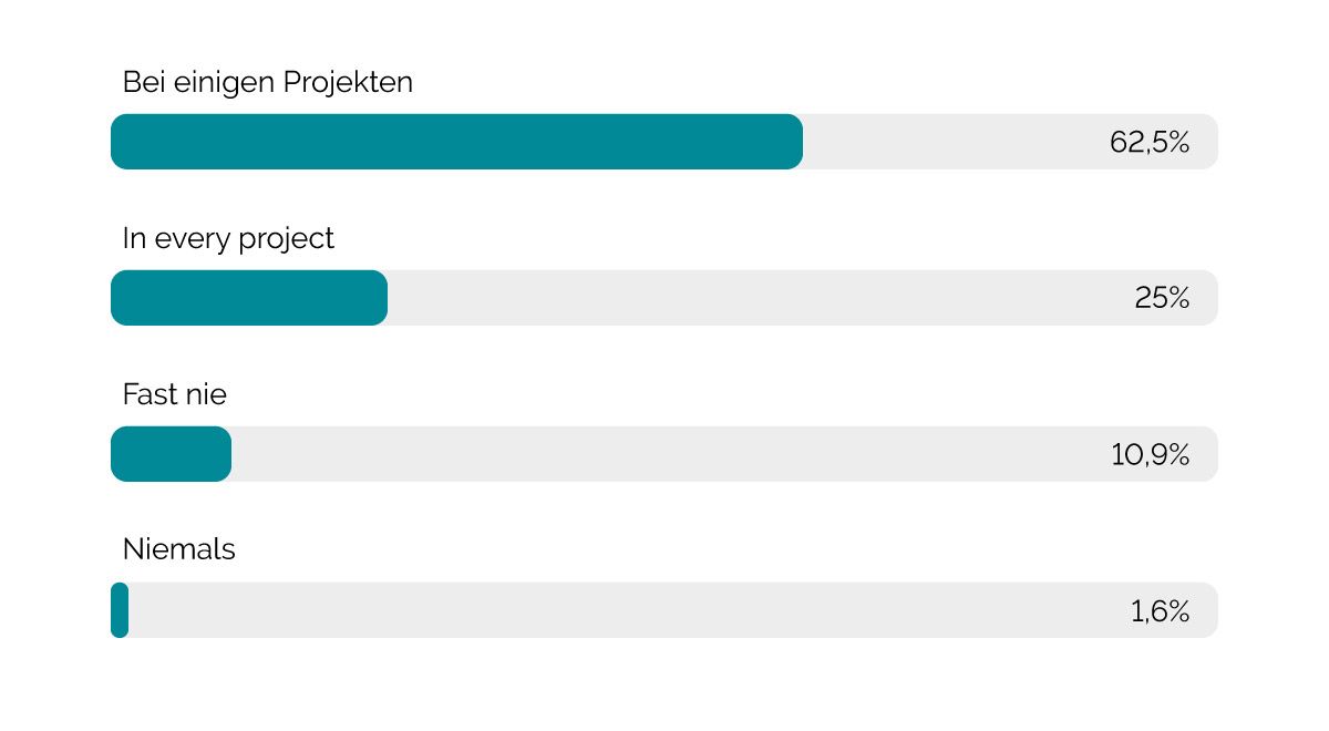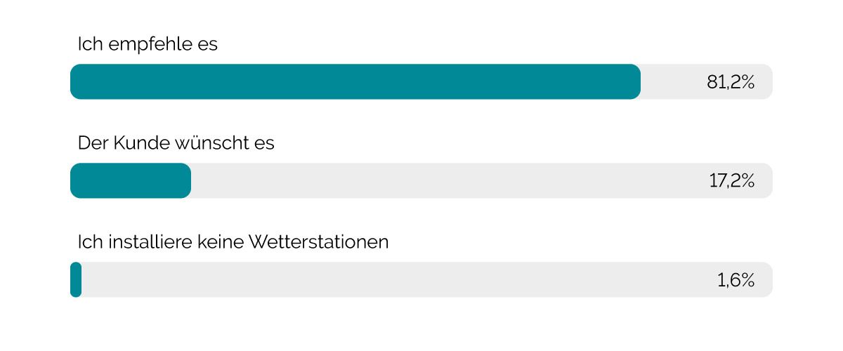 Wir haben auch einige interessante Rückmeldungen von den Integratoren erhalten. Nur ein Viertel von ihnen überzeugt ihre Kunden in jedem ihrer Projekte von der Nutzbarkeit der Wetterstation (Abbildung 10), obwohl sie eine Installation in fast jedem Fall vorschlagen (Abbildung 11). Wie in Abbildung 6 zu sehen ist, sind viele Benutzer jedoch nicht davon überzeugt, dass der Preis es wert ist.
