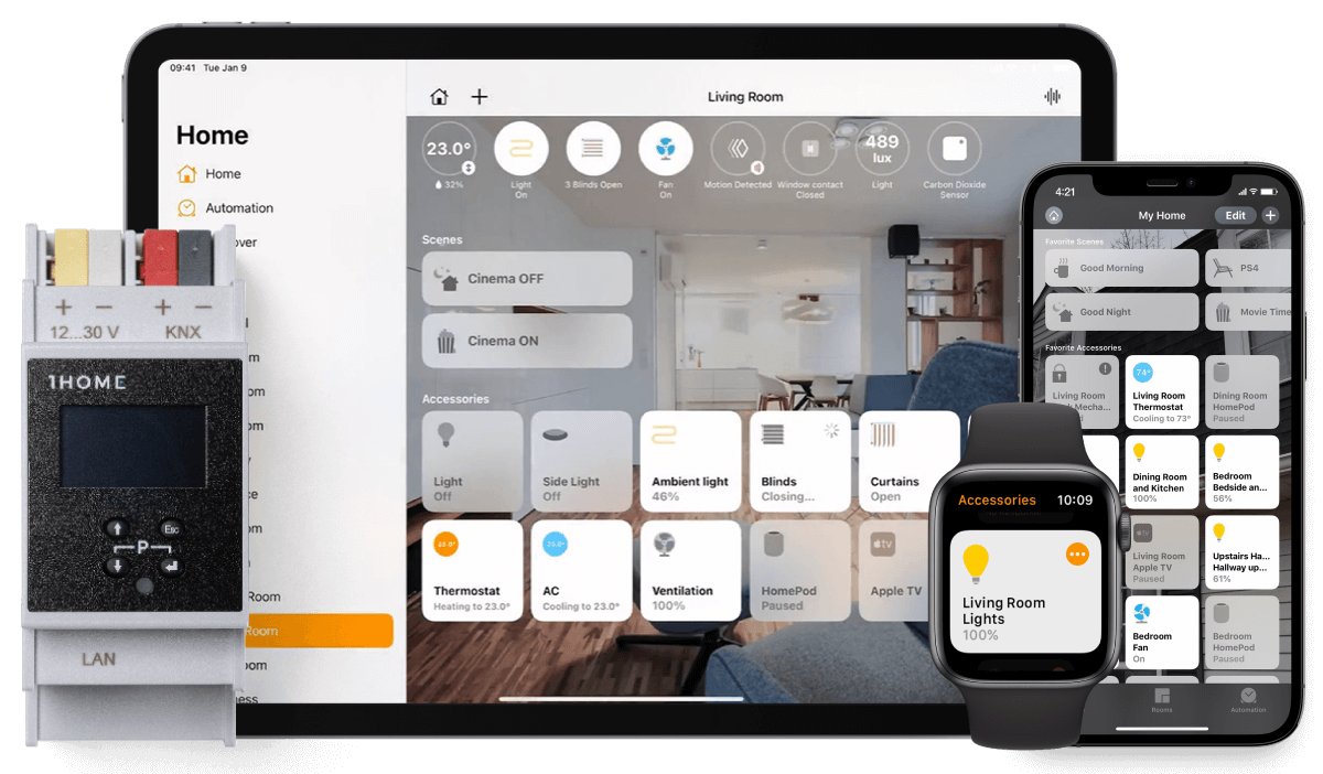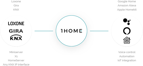 Usa el HomeKit de Apple para controlar tu casa inteligente Loxone o KNX con la Caja o el Puente 1Home, más información aquí: https://www.1home.io/