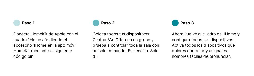 Nota: Debido al enfoque de Apple a HomeKit, se requiere una conexión local persistente. Esto lo aporta un dispositivo de hardware llamado Caja 1Home o Puente 1Home.