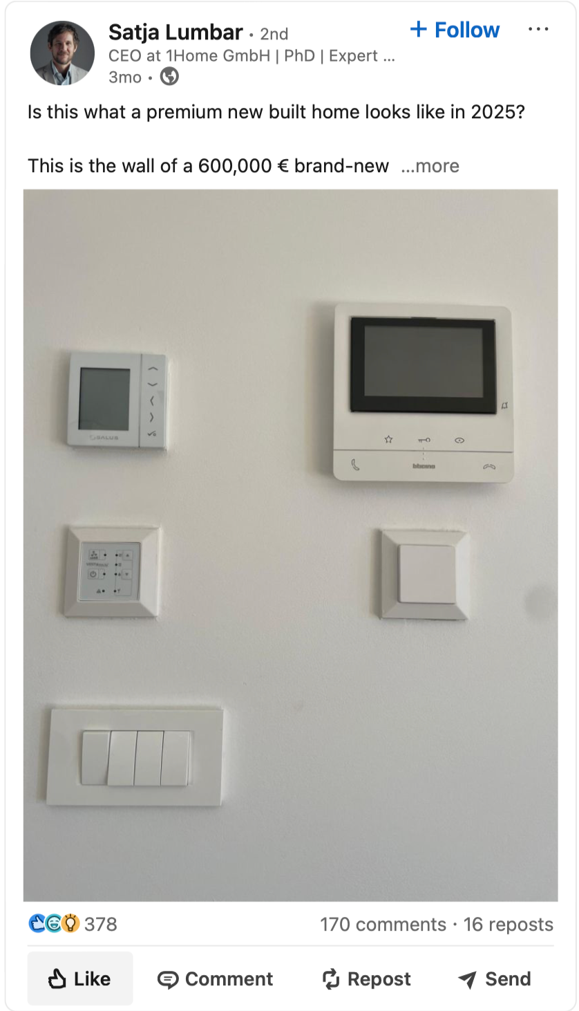 600,00 € brand new apartments - full of mismatched devices, the most basic switches available, and a total lack of design or user experience consideration. Is this really the best developers and integrators can offer?