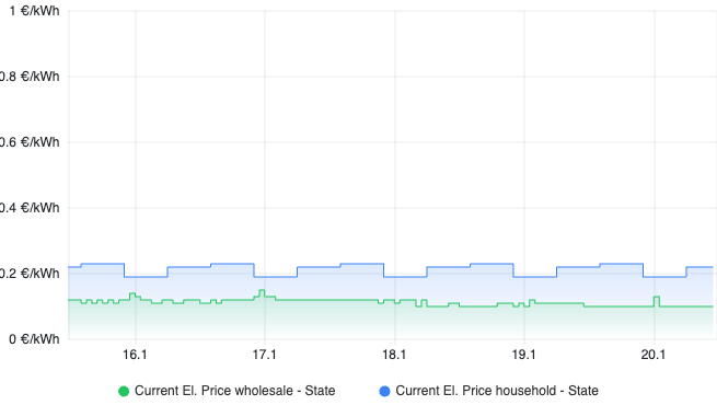 This was so easy I thought it's too good to be true. And of course, as it turns out in most such cases - it wasn't true. Or at least not in the way I wanted it to be. While I did get the energy price for my location into the system - this was only the average daily price of electricity, which is really not useful for any energy cost saving scenarios I had envisioned.