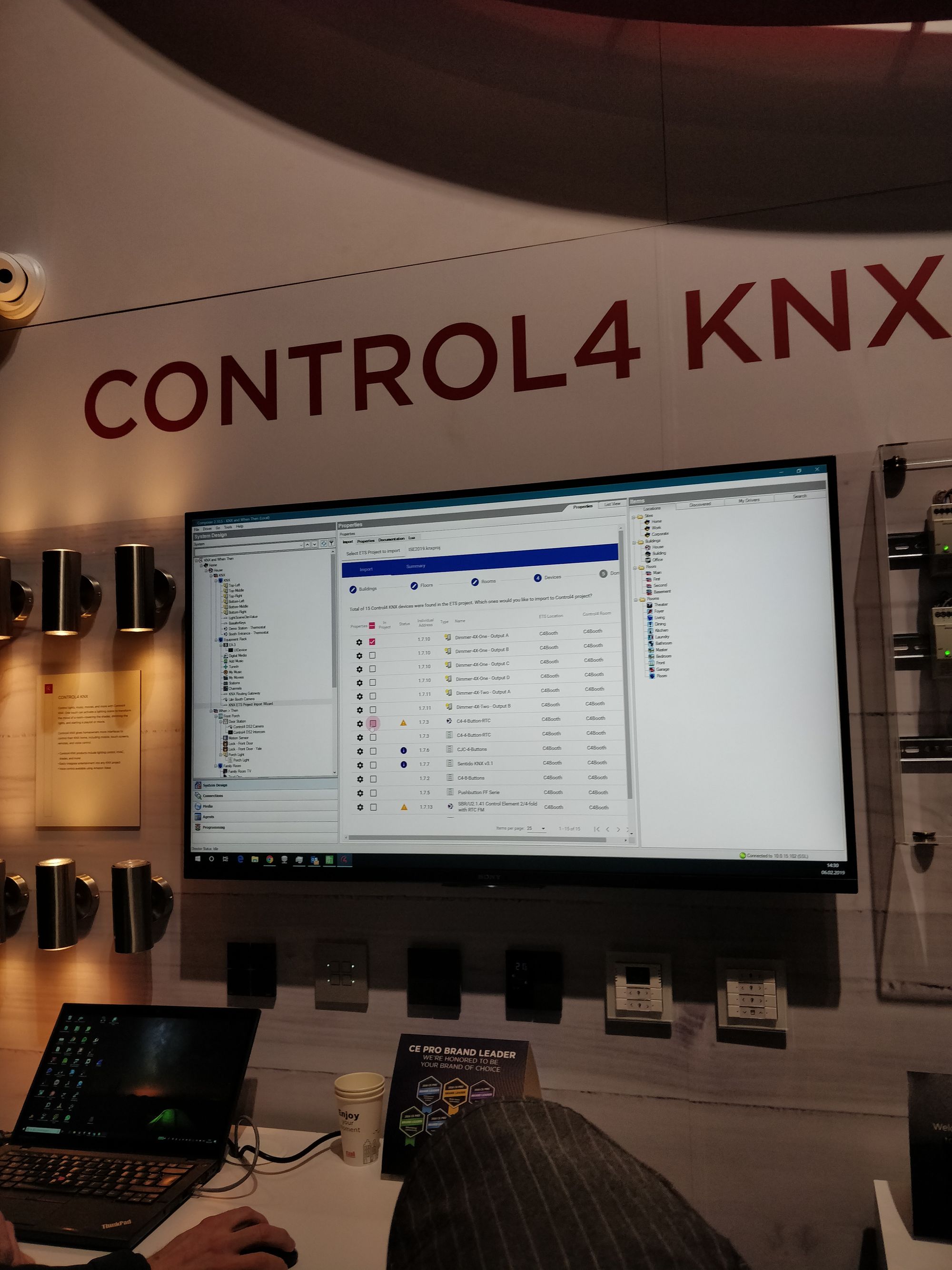 Control 4 has polished their offering even further to ease the entry barriers for adaptation of their system in Europe. They have focused on KNX and it is noticeable that they are researching many innovative ways on how to win over installer’s trust. The highlight of the show for us was the KNX ETS auto-detection software which automatically reads devices from a file and puts them in a logical order (floor, room, device type). Their primary focus seems to be on the push buttons so that when customers move into existing smart home installations, installers can simply change its functions based on customers wishes. Being able to connect them to other parts of Control 4 system (e.g. Netflix, Youtube etc.) is a big plus as well. One that their US customers have been enjoying for quite some time already. Control 4 has also thrown a delightful party which our team was happy to attend.