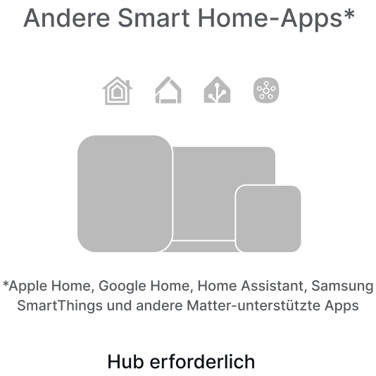 * Ausgenommen ist die Steuerung von Thread-Geräten, für die ein Thread Border Router erforderlich ist.