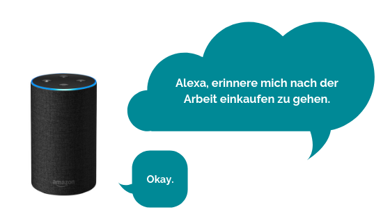 - „Alexa, erinnere mich daran, die Einkäufe mitzunehmen, wenn ich bei der Arbeit losgehe.“