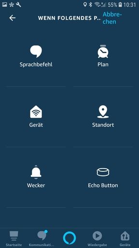 - Echo Knopf: Drücken Sie einen Knopf direkt am Amazon-Gerät, um eine Routine auszulösen.