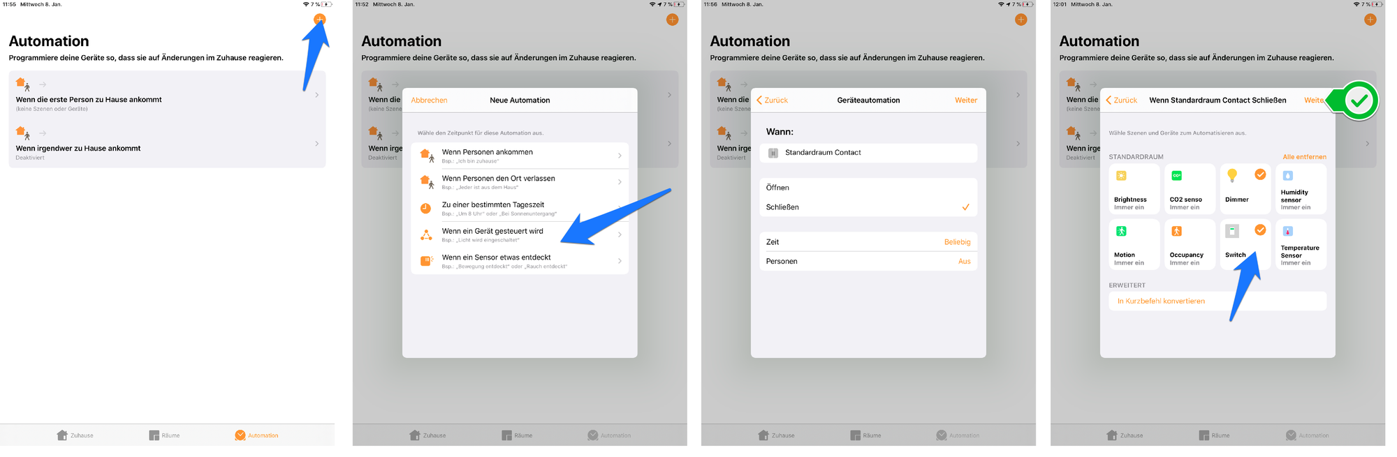 - Ich bin zu Hause (Wohnzimmerbeleuchtung einschalten, Türen abschließen, Musik spielen);