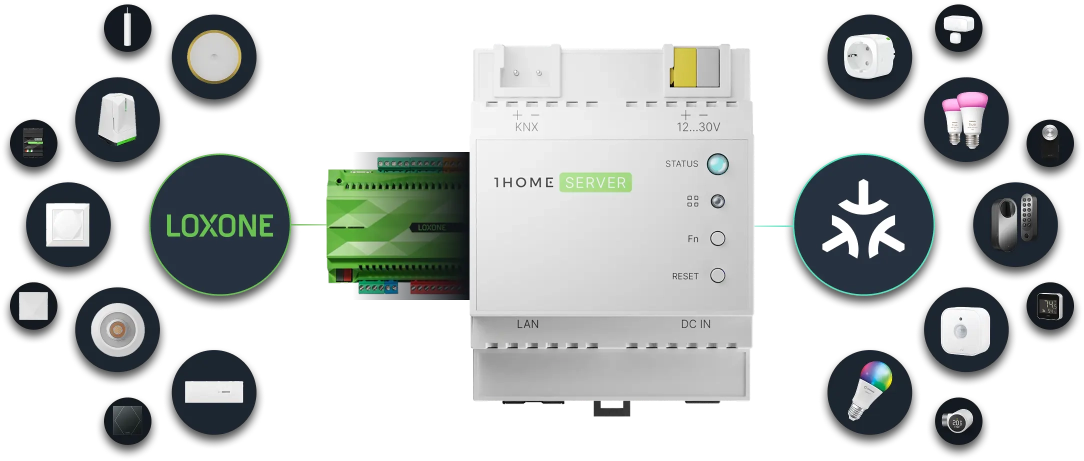 Beide Geräte stellen eine Verbindung zwischen KNX Geräten und Smart Assistants her, aber der 1Home Server verwendet dazu Matter - den zukunftssicheren, offenen Standard, auf den alle Assistenten migrieren und den sie als ihr zentrales Smart Home-Protokoll verwenden.