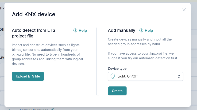 - Wenn bestimmte Geräte vom automatischen ETS-Import nicht erkannt wurden, können Sie diese manuell hinzufügen.