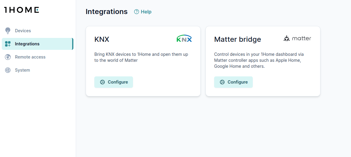 Klicken Sie auf die Registerkarte Integrationen. Klicken Sie dann unter der Integration "Matter Bridge" auf Konfigurieren.