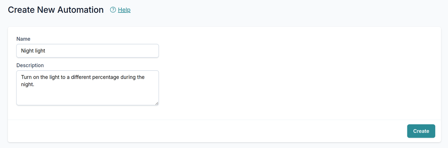To start creating your first automation, click + Add button and provide automation name and description (optional).