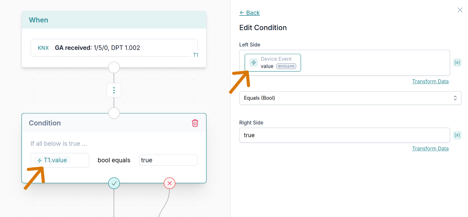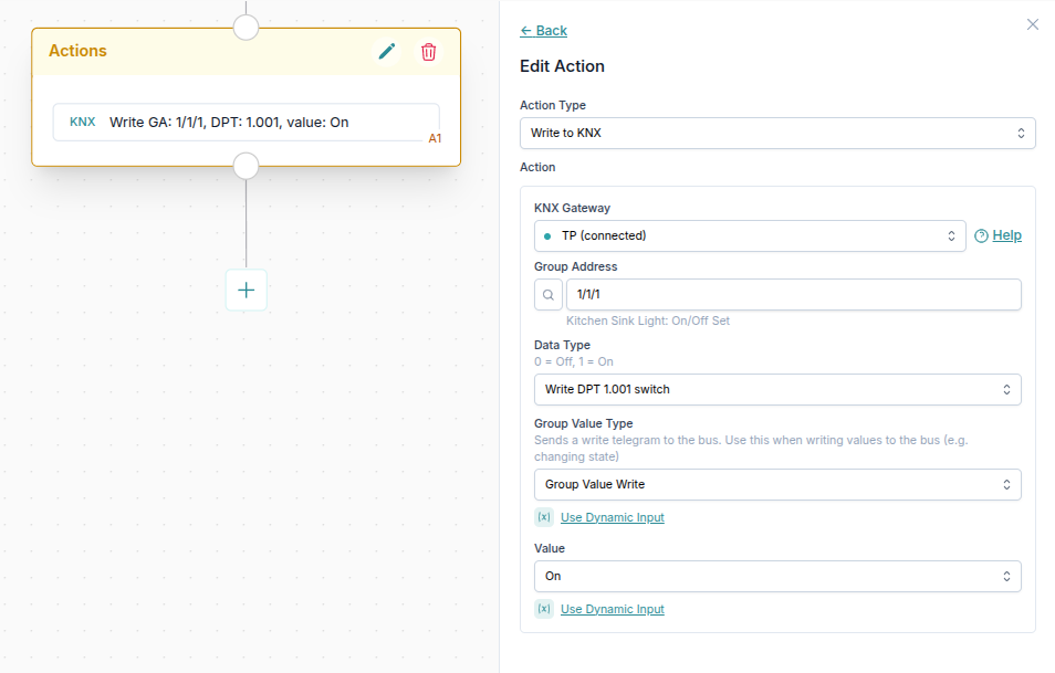 In Automations, like in other parts of the 1Home Server, KNX is a first class citizen.