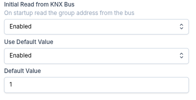 • Enabled - On startup read the group address from the bus. If the read fails set the default value from "Use Default Value" field.