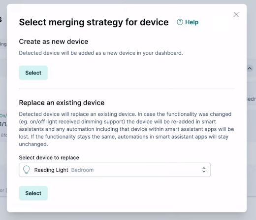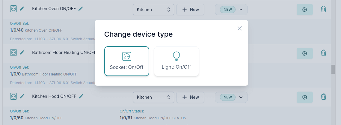Comprender la diferencia entre un enchufe y una luz durante la detección ETS es a veces bastante difícil. Por ello, puede cambiar el tipo de determinados tipos de dispositivos haciendo clic en el 🖊️ situado junto al icono del dispositivo.