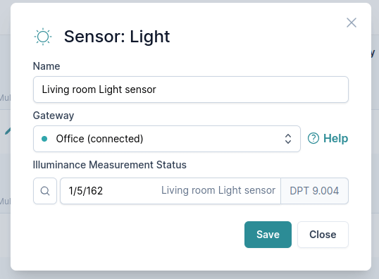 Para cada dispositivo puede ver qué direcciones de grupo se seleccionaron para cada atributo del dispositivo (setear on/off, estado on/off, etc.).