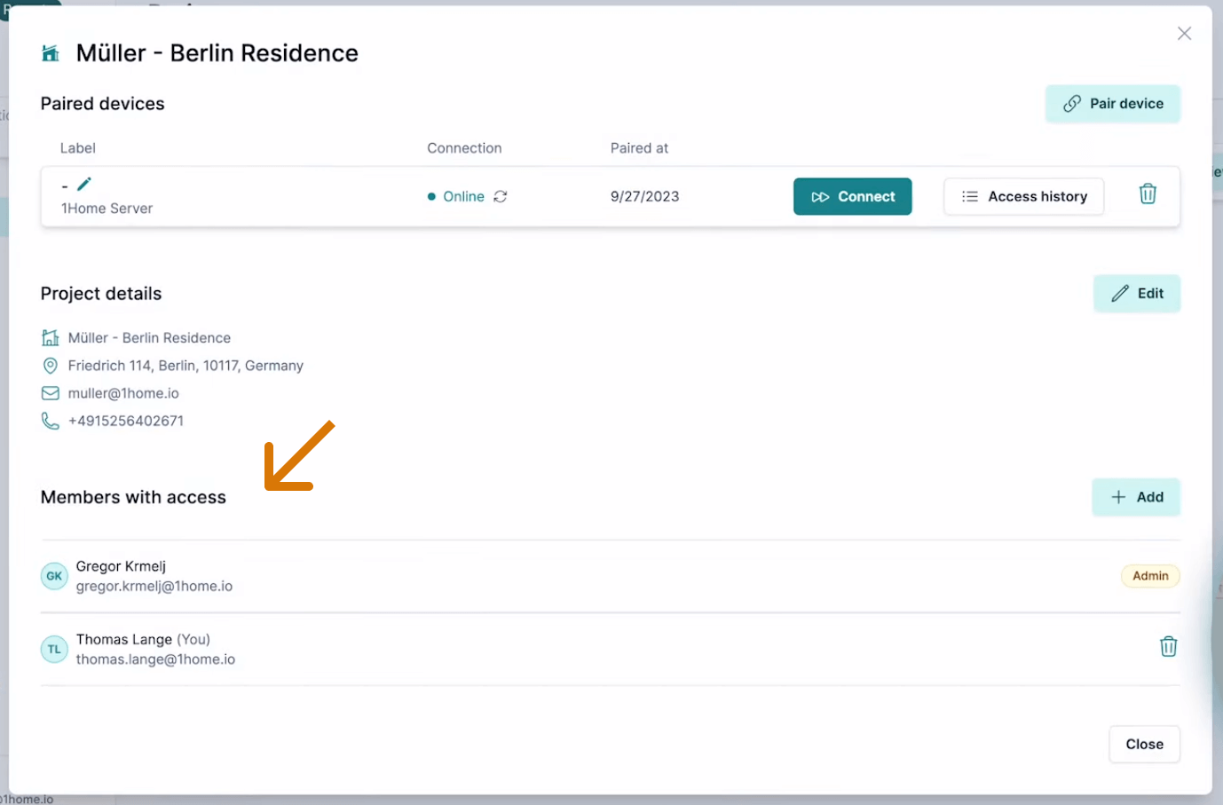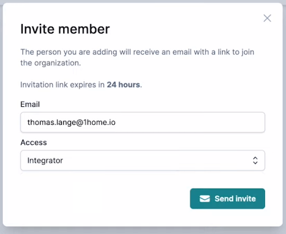 L'invitato riceverà un'e-mail di invito e dopo aver creato un account in remote.1home.io potrà utilizzare il link per unirsi all'organizzazione.