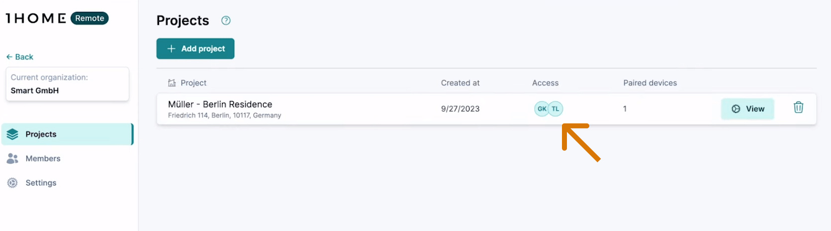 Qui si può anche aggiungere o rimuovere l'accesso a un progetto specifico per un determinato membro dell'organizzazione.