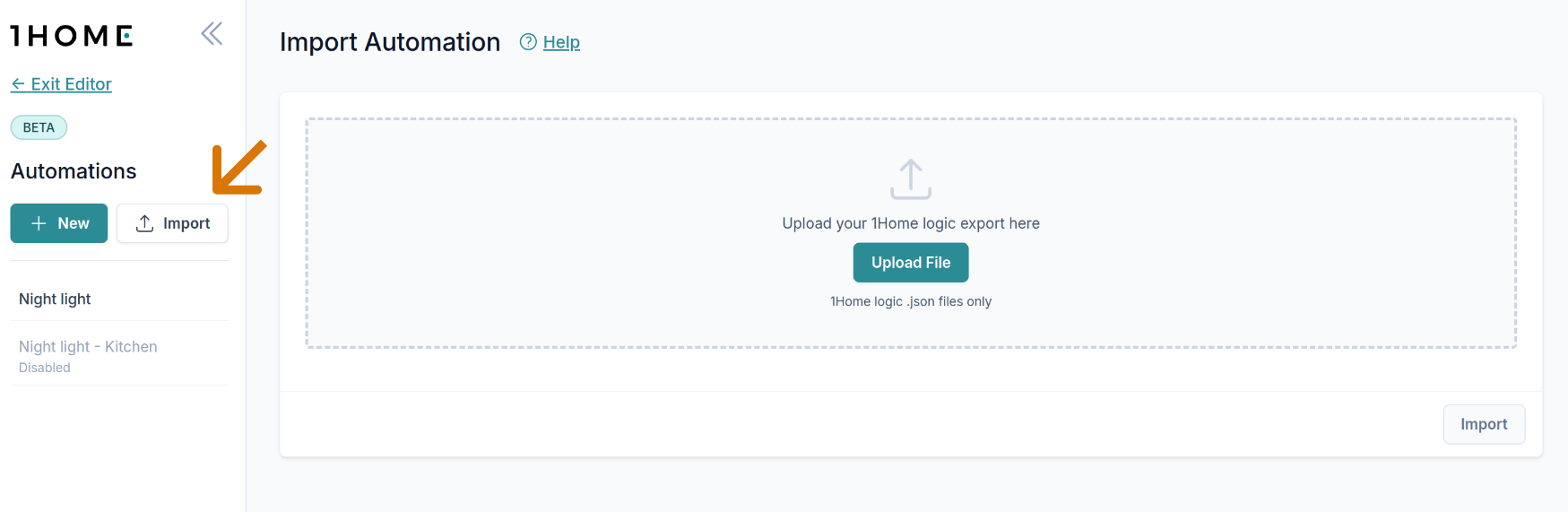Se vuoi importare un'automazione che non è stata creata in questo sistema o vuoi utilizzare un'automazione in un altro progetto, puoi utilizzare le funzioni Esporta e Importa. (Se desideri importare tutte le automazioni, consulta il suggerimento sopra.)