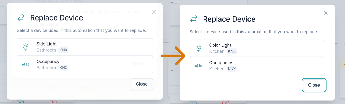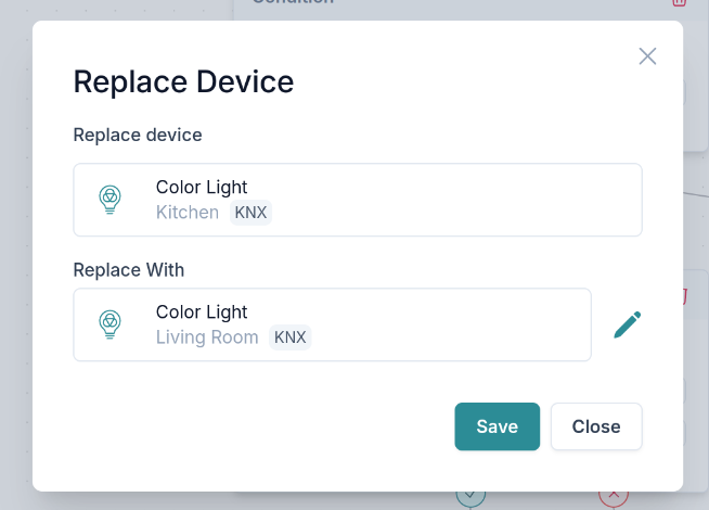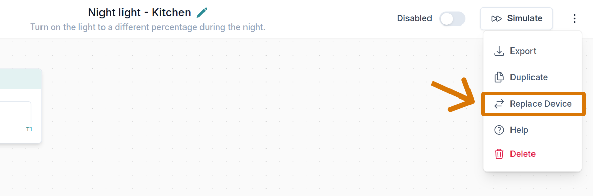 Invece, usa la funzionalità Duplica per duplicare l'automazione e poi usa la funzione Sostituisci dispositivo per sostituire i dispositivi all'interno dell'automazione. Insieme ti offrono un modo estremamente rapido di riutilizzare le automazioni. Bastano solo un paio di clic, indipendentemente dalla complessità dell'automazione!