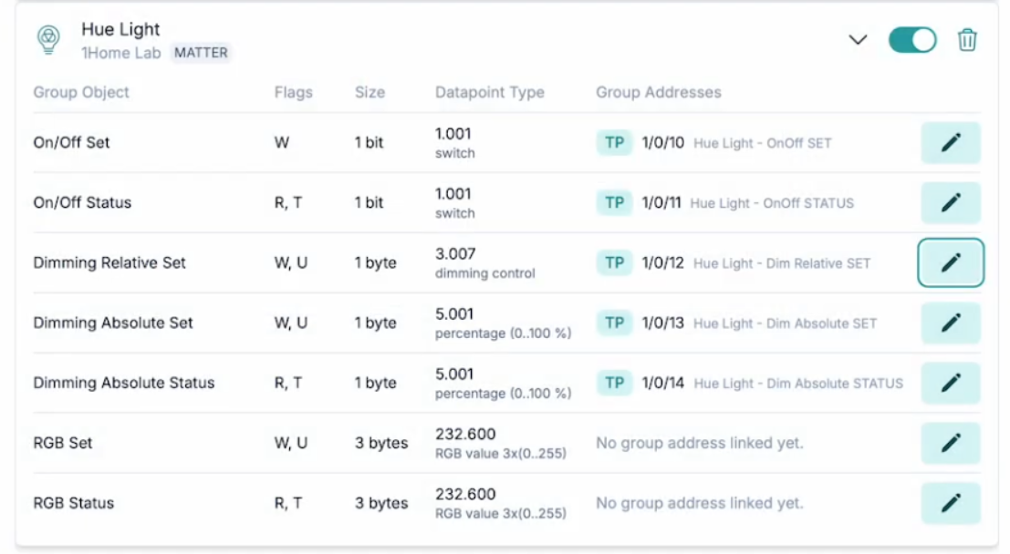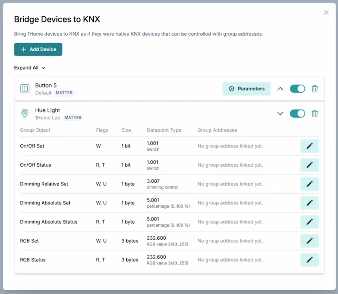 Integrare i dispositivi IoT (ad es. Matter) su KNX. Assegnare indirizzi di gruppo direttamente ai dispositivi IoT e controllarli da KNX come se si trattasse di un dispositivo KNX normale.