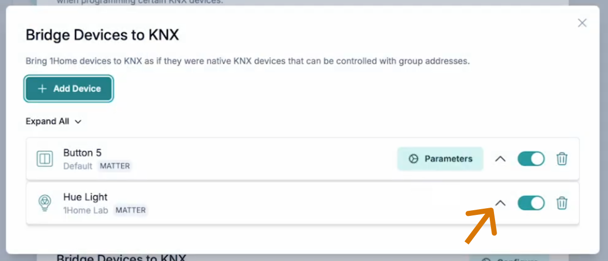 Fare clic su Espandi dispositivo per visualizzare tutti gli oggetti di gruppo KNX disponibili..