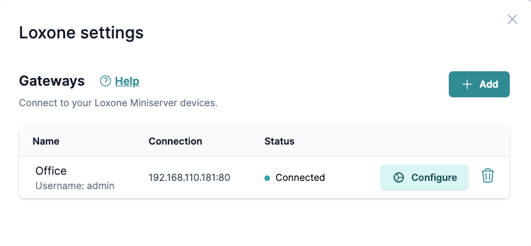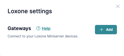 Nelle impostazioni di Loxone, fare clic su Gateways il pulsante Add.