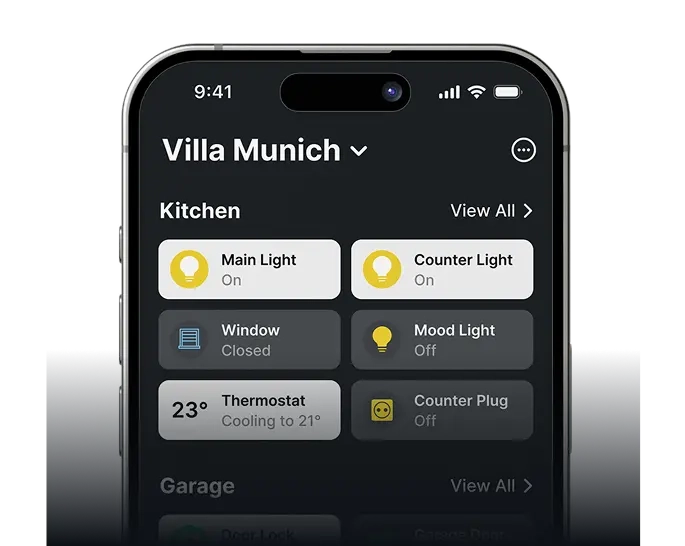 Controla todos tus dispositivos KNX y Matter, remota o localmente, desde una única aplicación móvil.