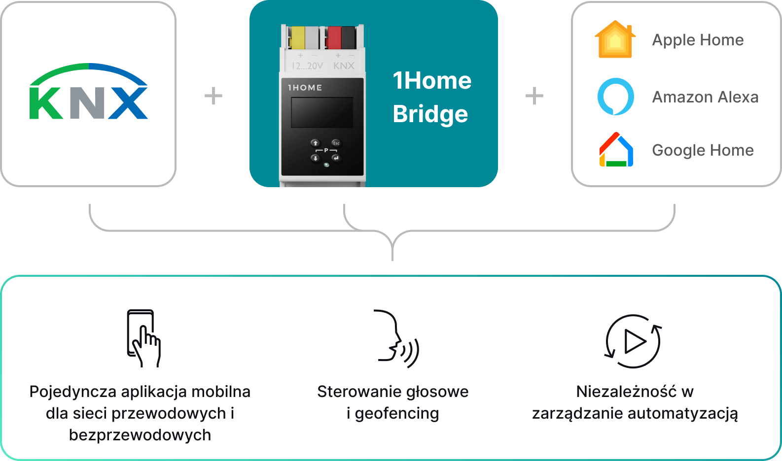 Niezależnie od tego, czy używasz KNX, Loxone czy Matter, będziemy centralnym mózgiem, który łączy wszystkie Twoje urządzenia, oferując sterowanie aplikacją i głosem, bezproblemową interoperacyjność i zaawansowaną automatykę.