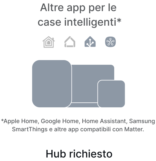 * Matter Bridges (ad esempio Philips Hue) non hanno limiti sul numero di dispositivi collegati, e vengono conteggiati come 1 dispositivo fisico.