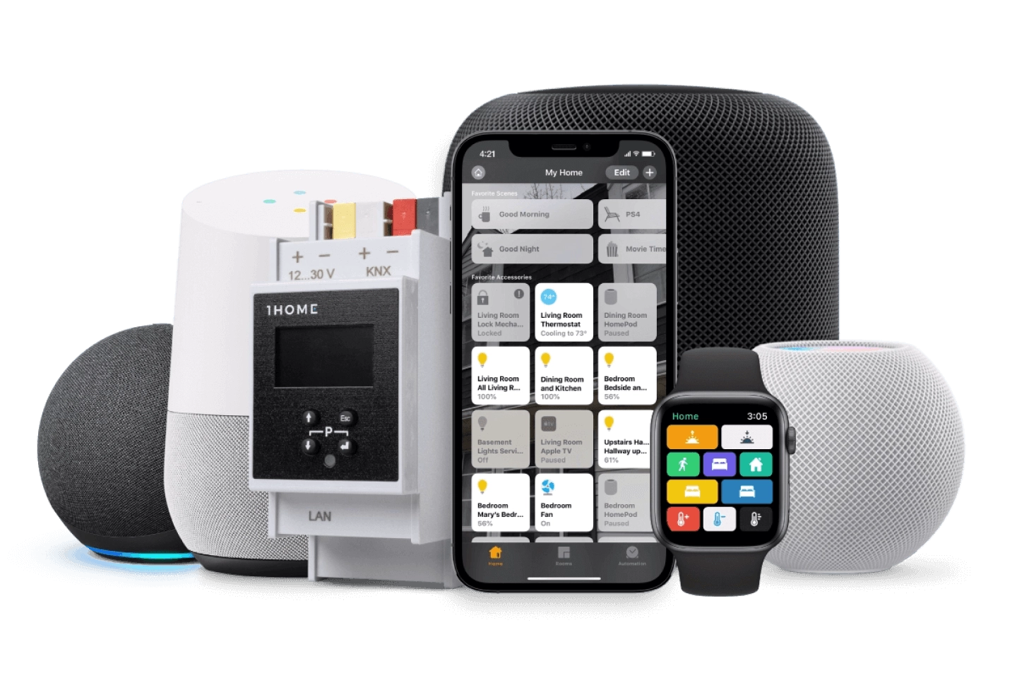 1Home con molteplici app mobili e interfacce di controllo vocale