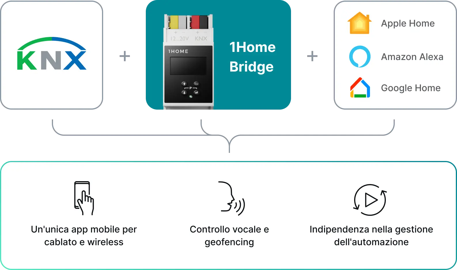 KNX offre stabilità e affidabilità, mentre gli assistenti intelligenti abilitano funzionalità moderne. Metti tutto insieme, e avrai l'esperienza smart home definitiva.